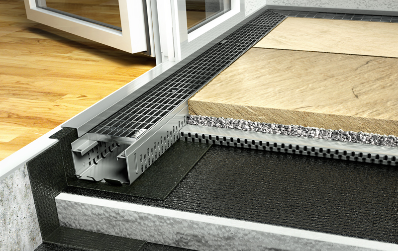 Rozwiązanie dla tarasów z wykończeniem płyt na warstwie żwirowej lub tarasów wentylowanych. Umożliwia obniżenie progu wejścia do mieszkania z 15 cm do 5 cm. Montaż bez ingerencji w izolację wodochronną (bez przykręcania). Posiada regulację wysokości.